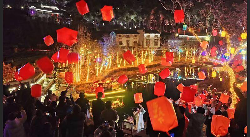 黄山市徽州区春节期间升放孔明灯。徽州区委宣传部供图