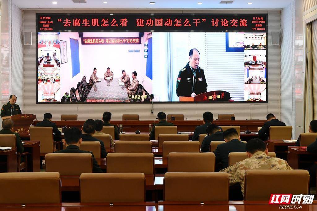 交流辨析 深剖细研凝聚共识下午,活动转入研讨阶段,湘潭军分区以电视电话会议形式组织人员围绕“去腐生肌怎么看、建功国动怎么干”主题作交流发言。发言代表结合上午的所见所闻、所思所悟,畅谈对全面从严治党、全面从严治军的认识,探讨如何在本职岗位上恪尽职守、廉洁履职、建功立业。