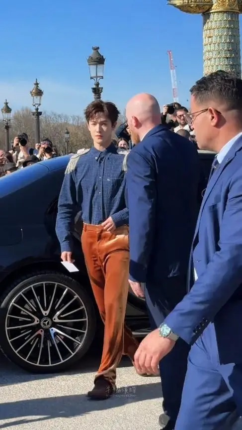 他站在巴黎的古典建筑前,没有刻意摆拍,眼神舒展,肢体自然,就像漫步街头的贵公子。